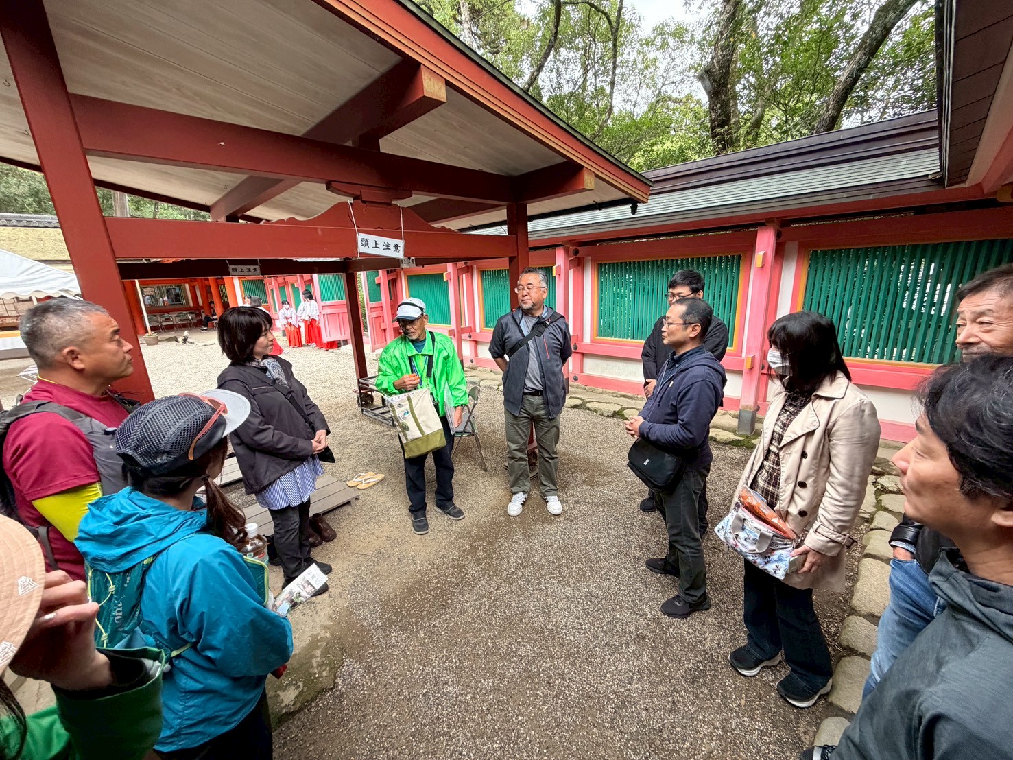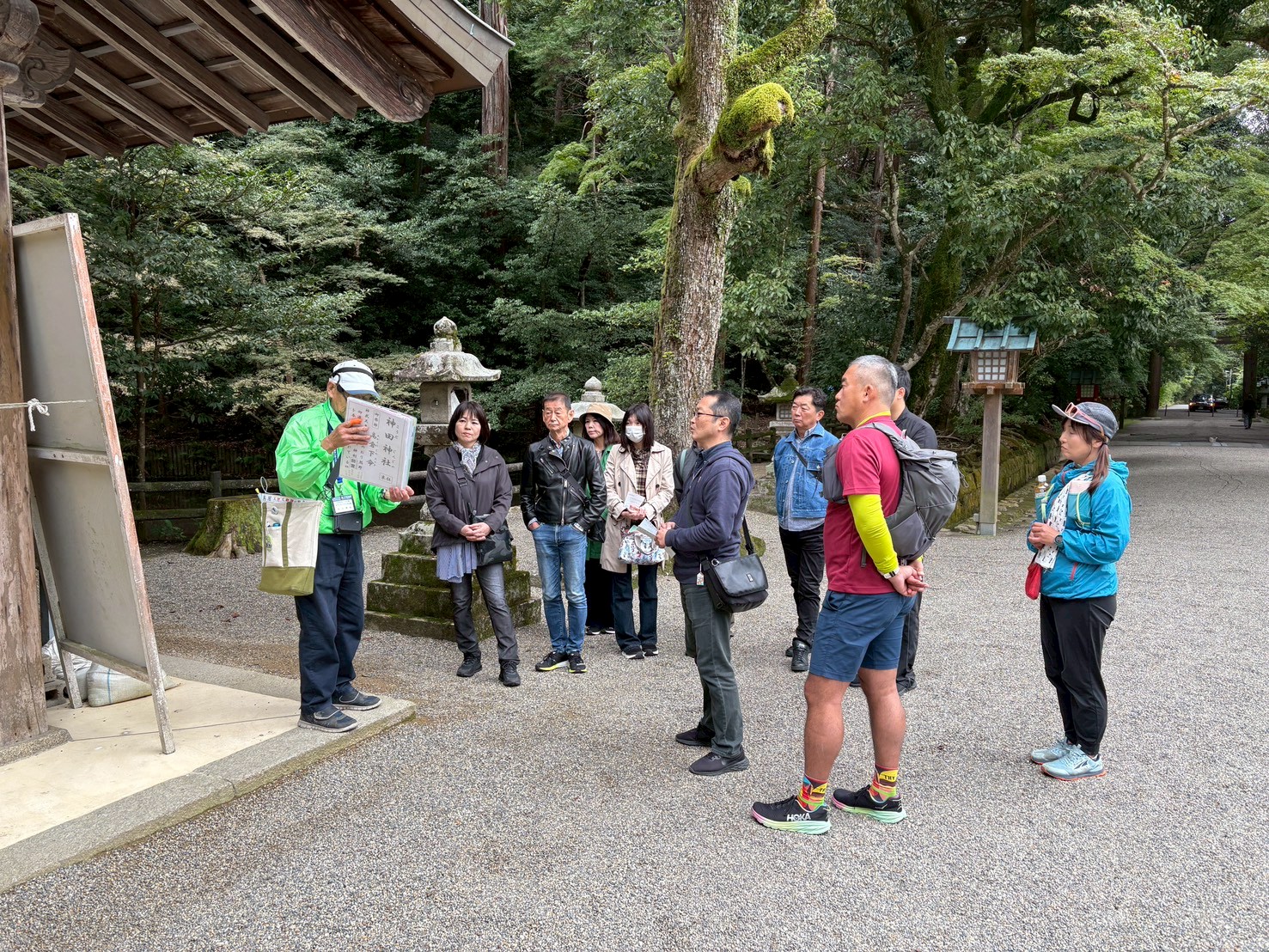 境内では、ガイドの坂本さんが、ご自身でつくられた「ガイドブック」を片手に、