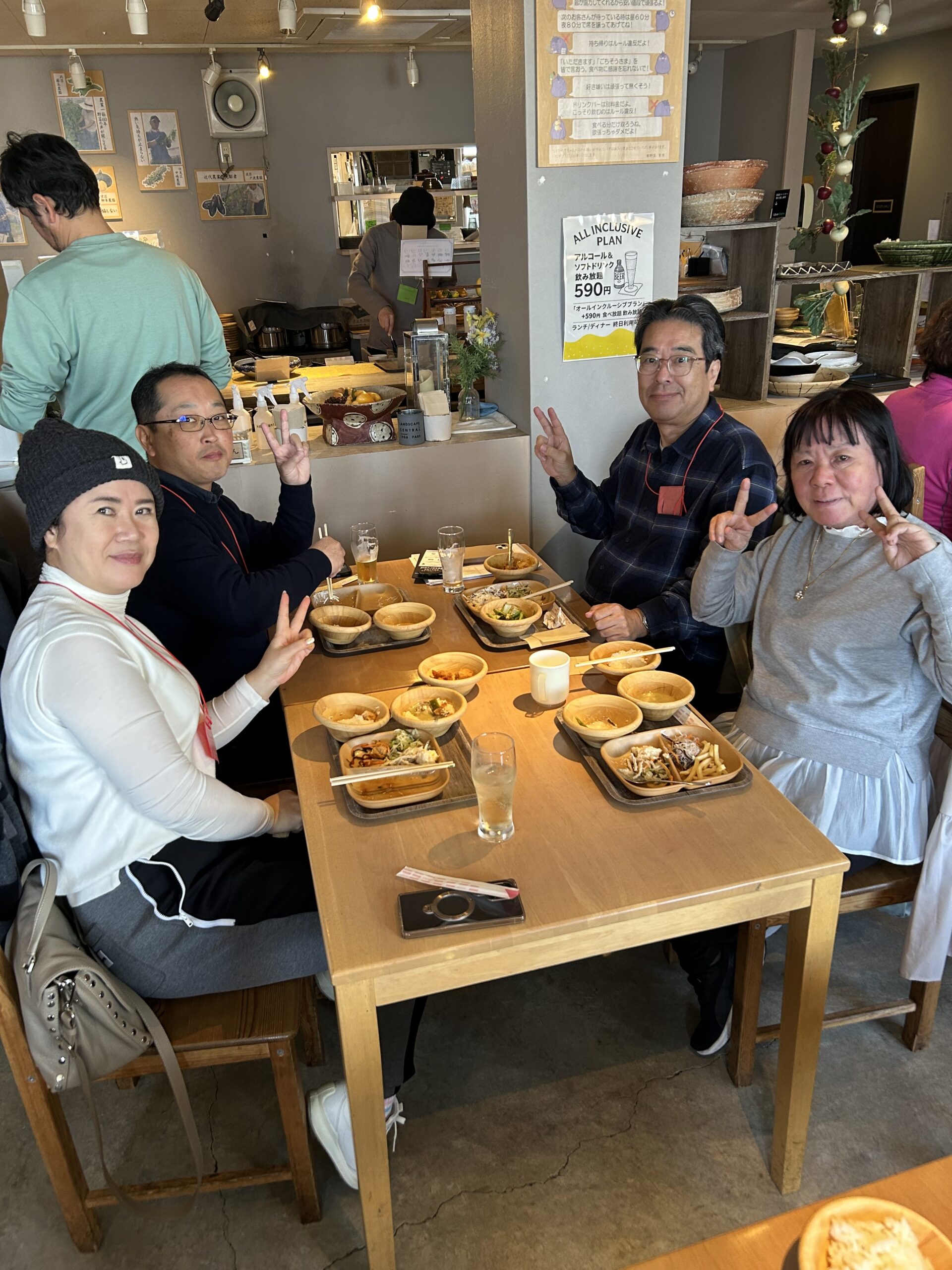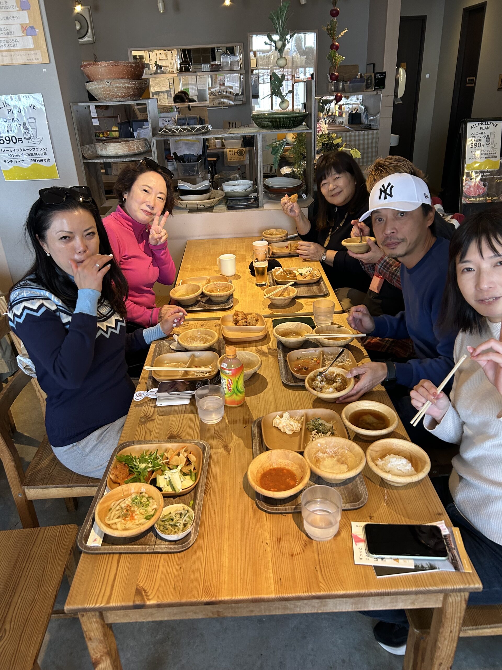 老舗和菓子屋「菱屋」に寄って絶品おかき「うすばね」を買って、お昼は「都野菜賀茂」で「都野菜バイキング」をいただきました。