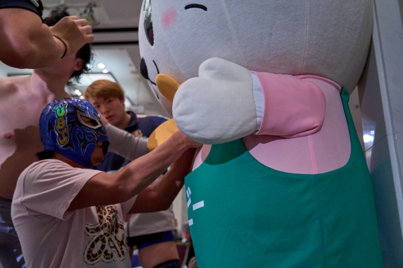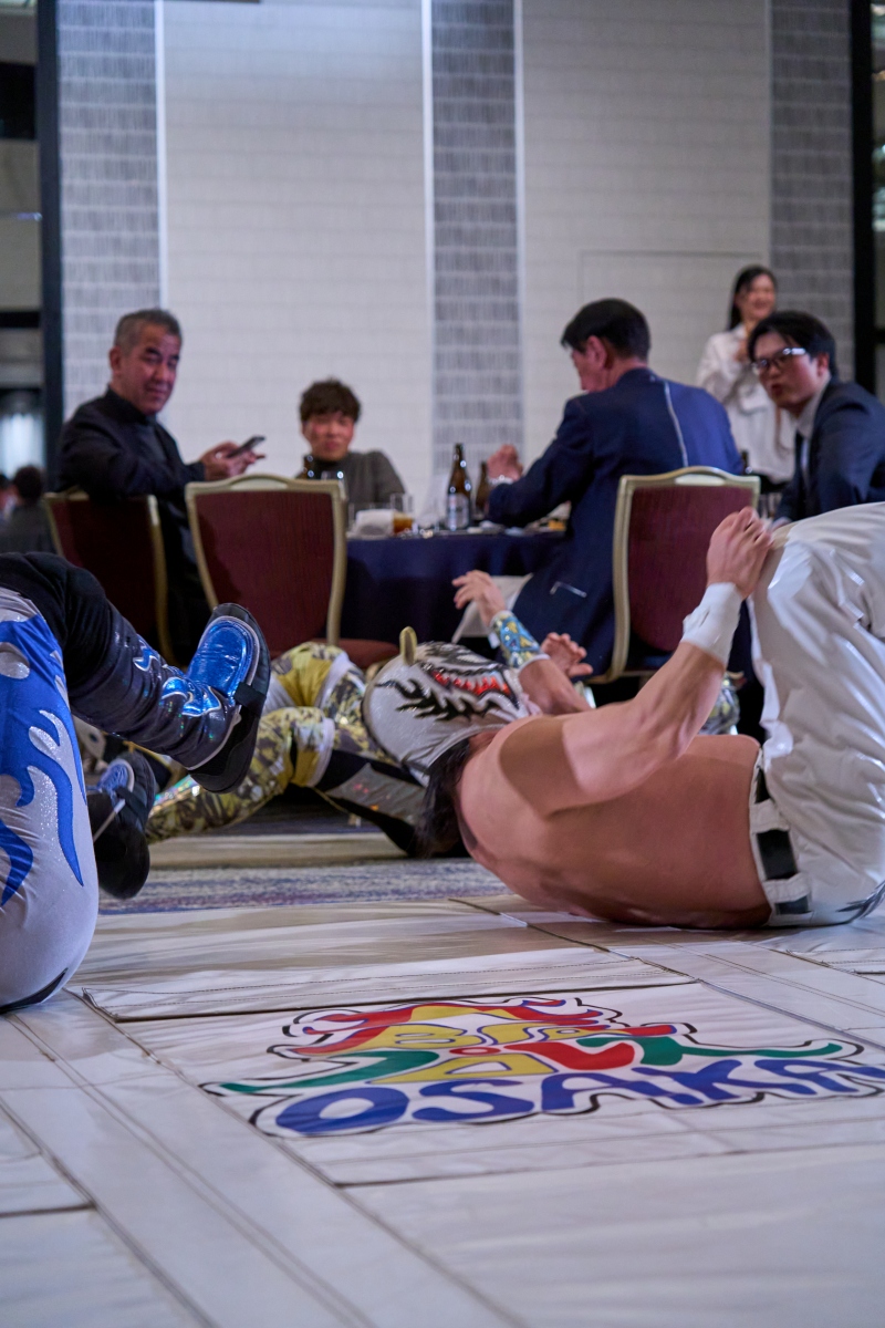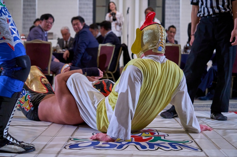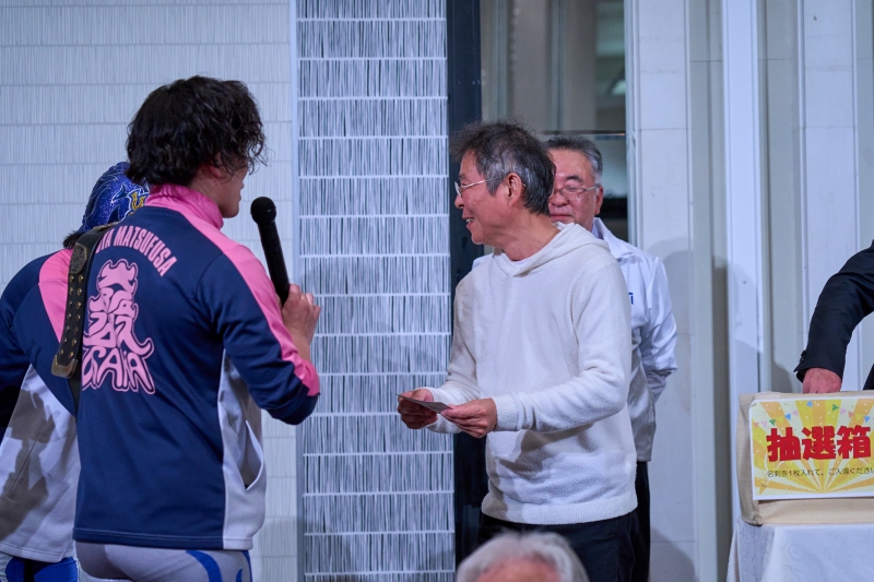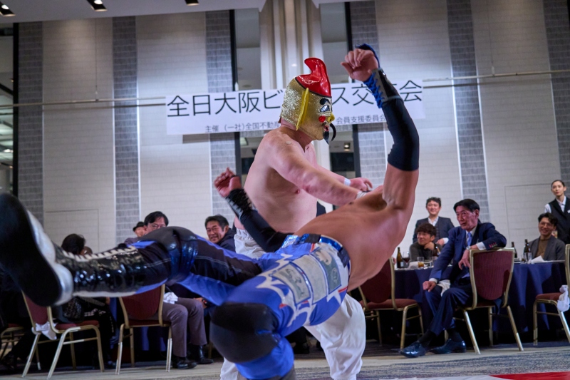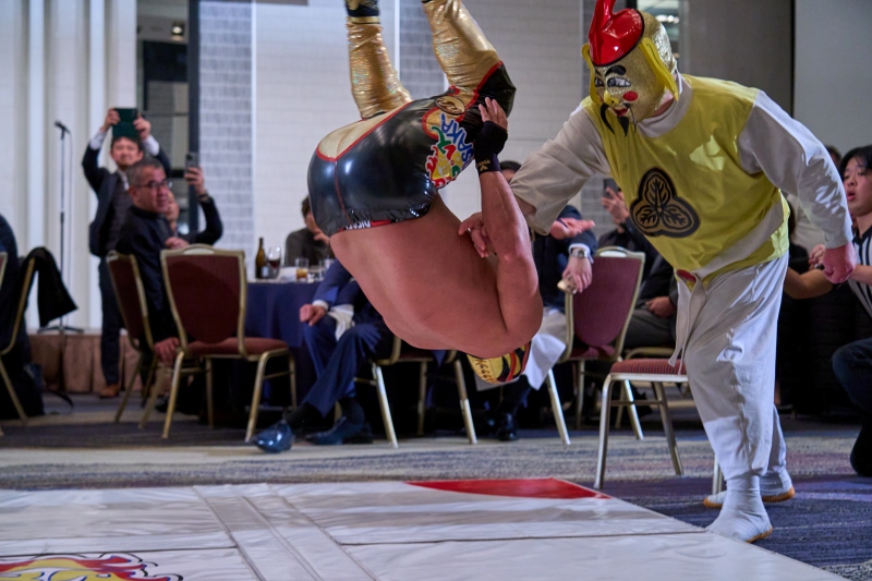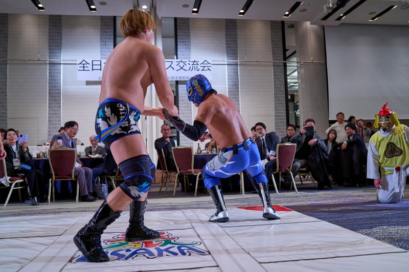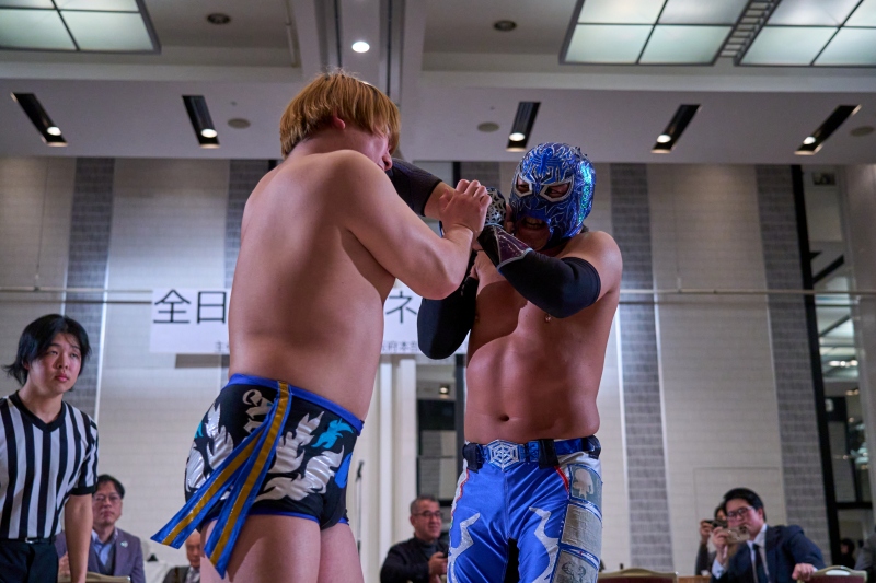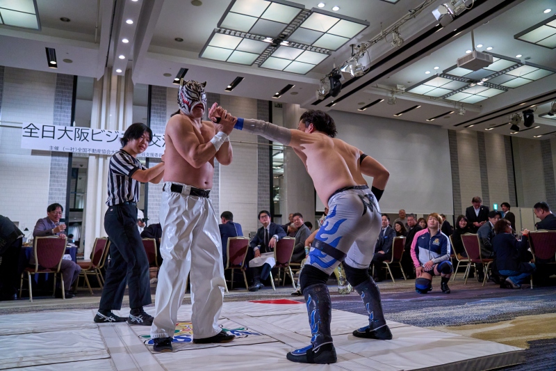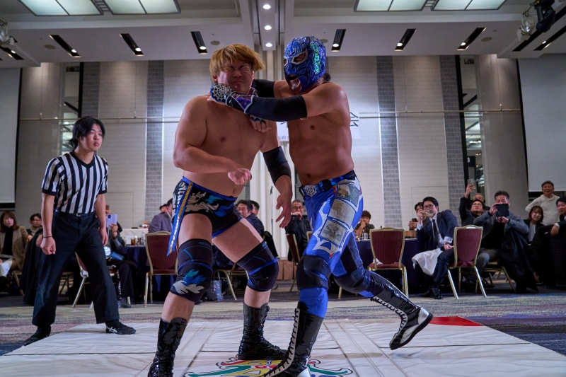 間近でみるプロレスは迫力満点。会場は大いに盛り上がりました。