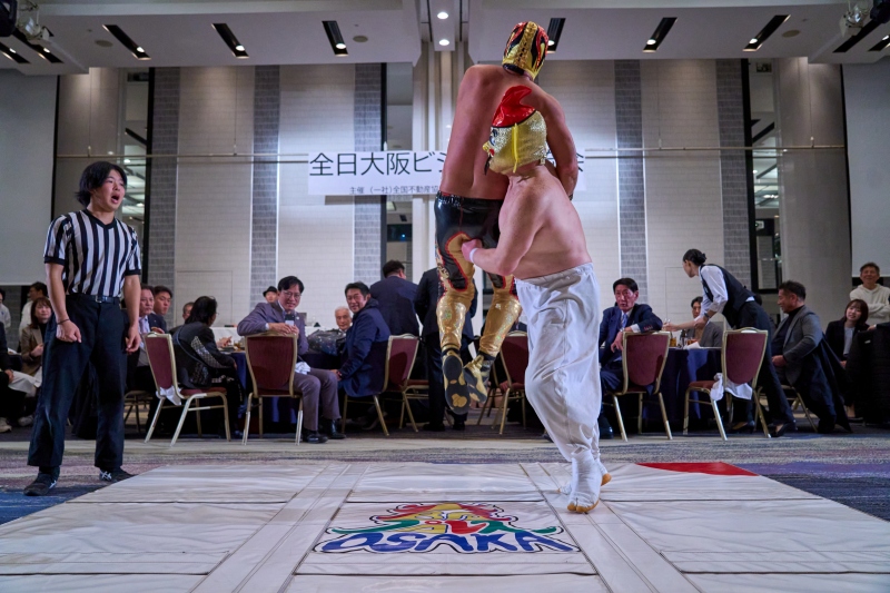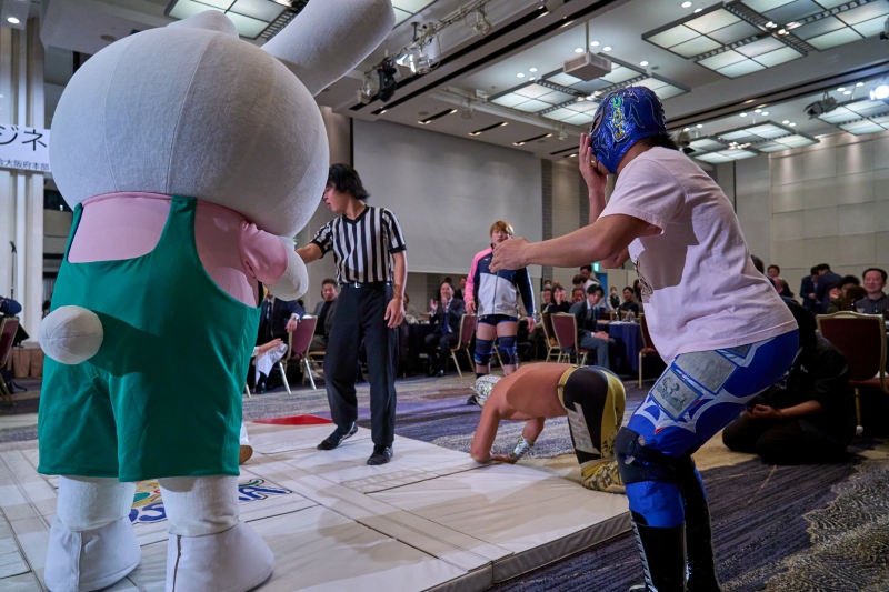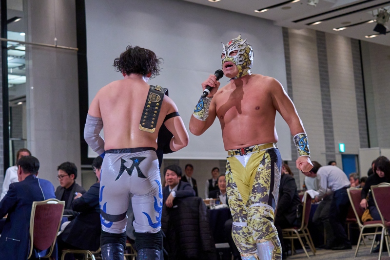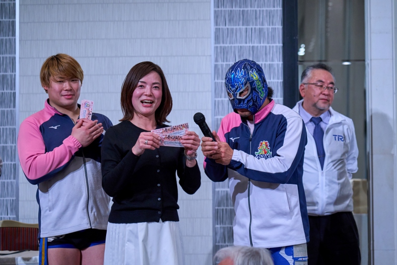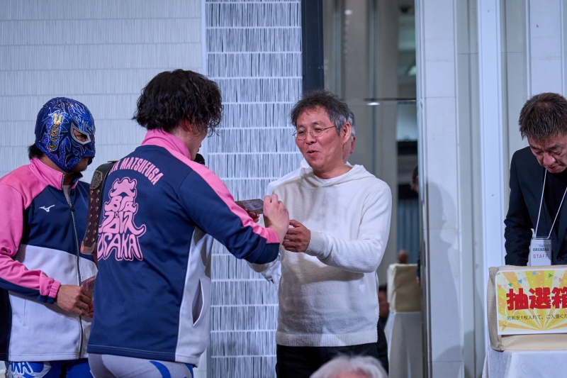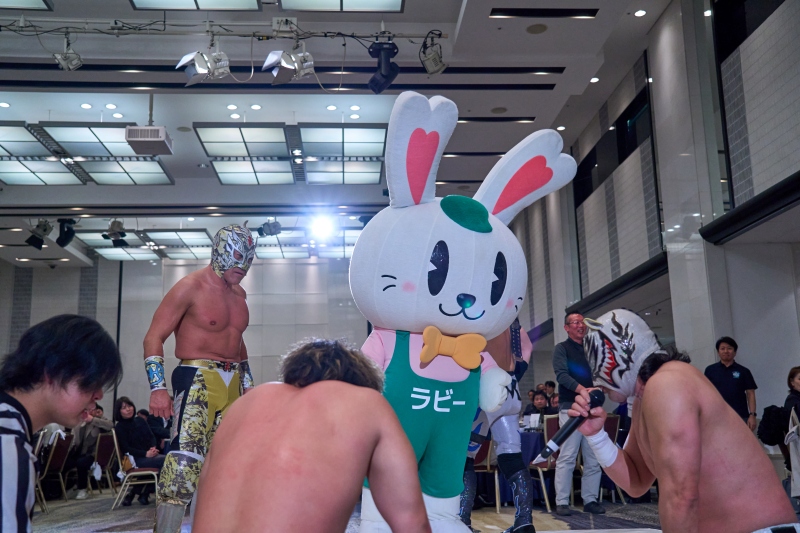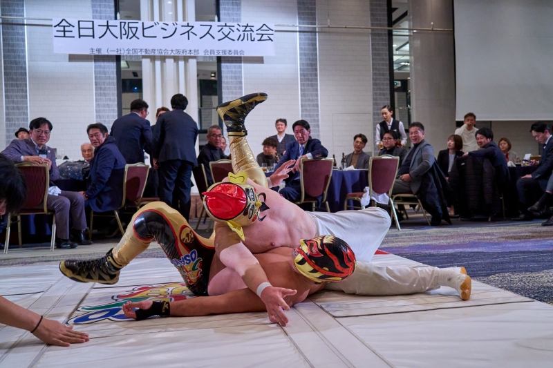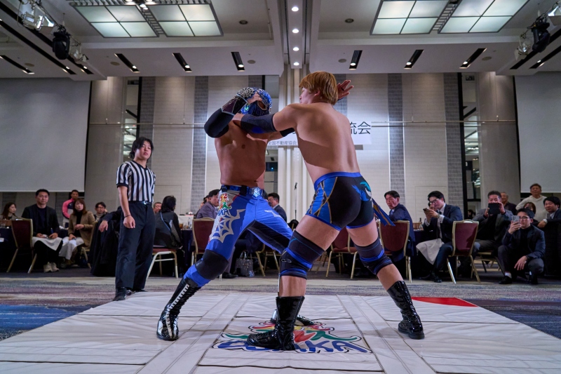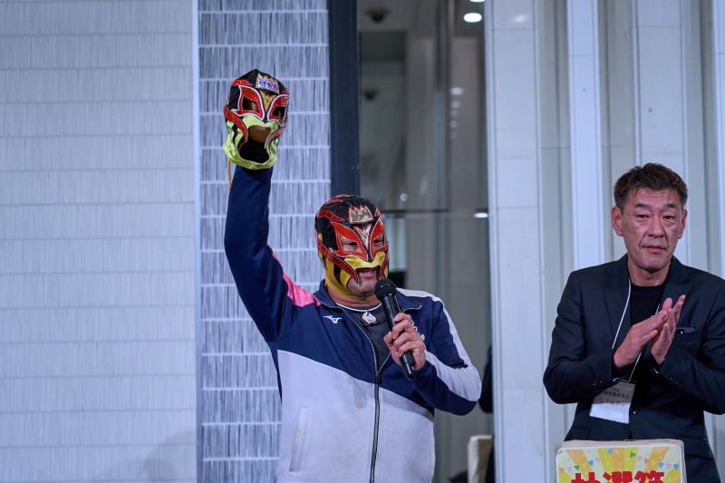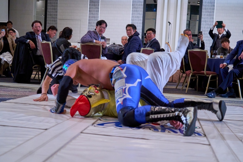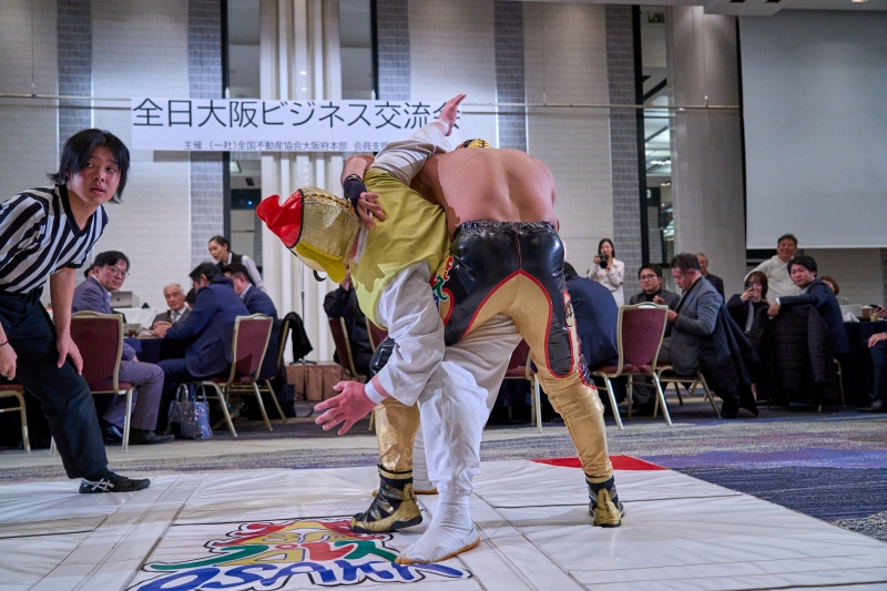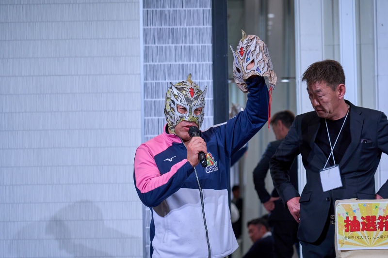 間近でみるプロレスは迫力満点。会場は大いに盛り上がりました。