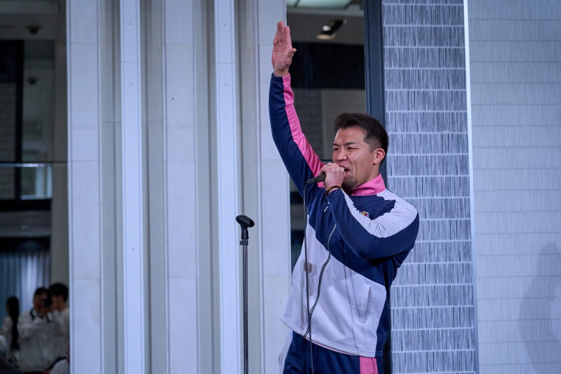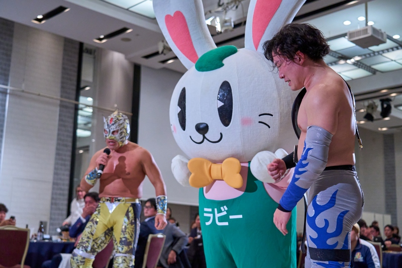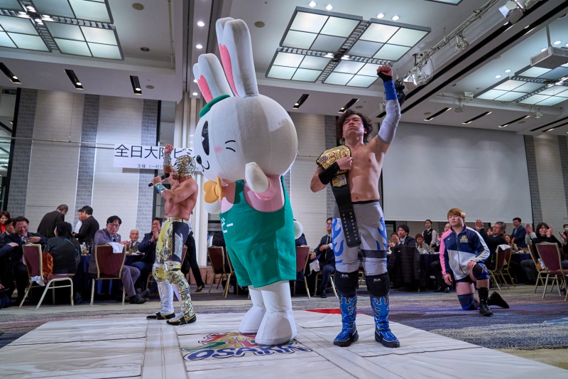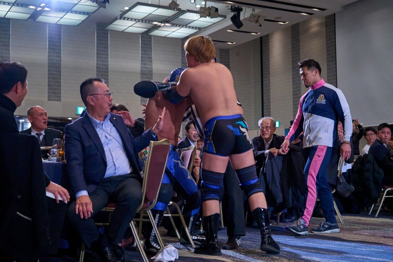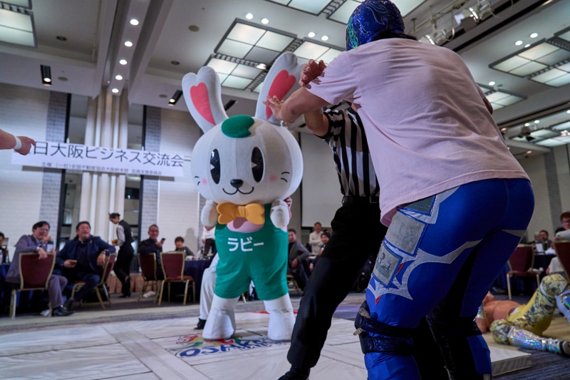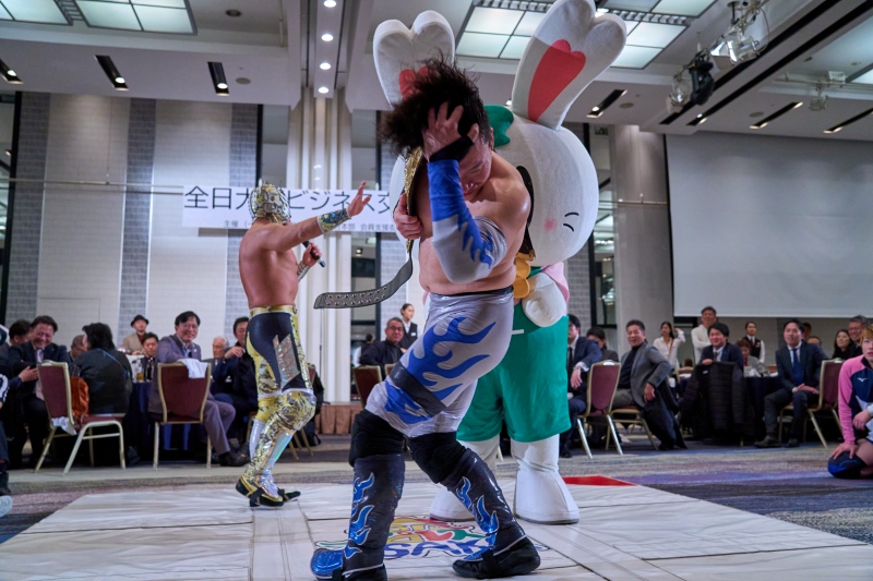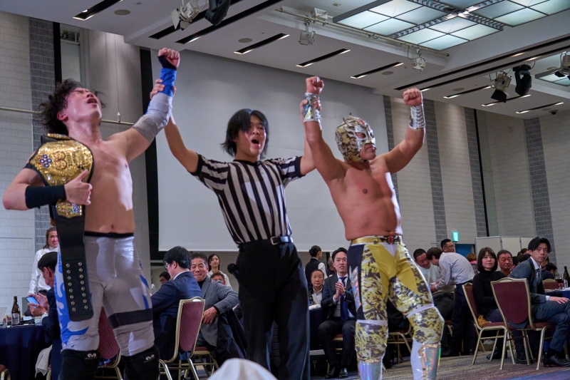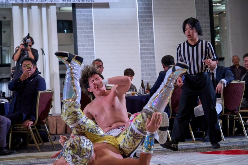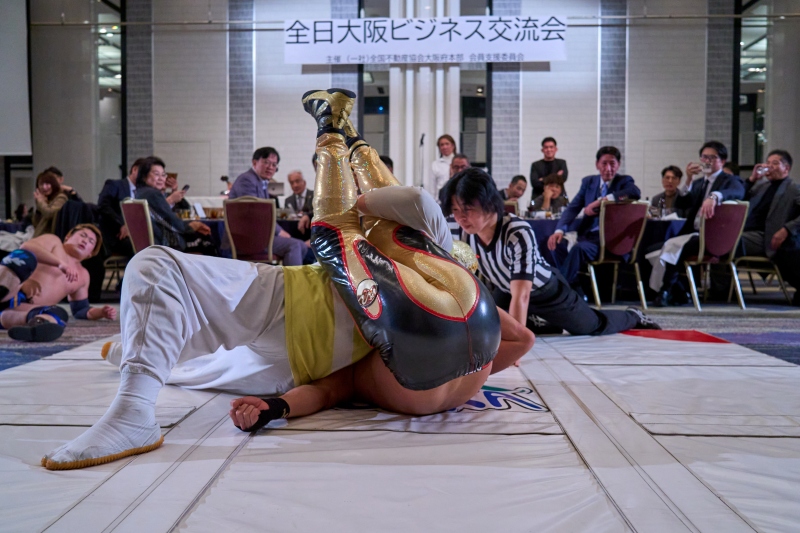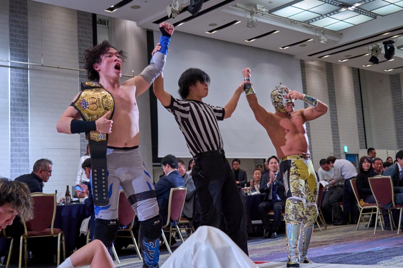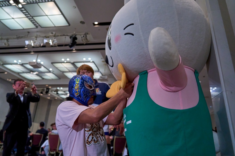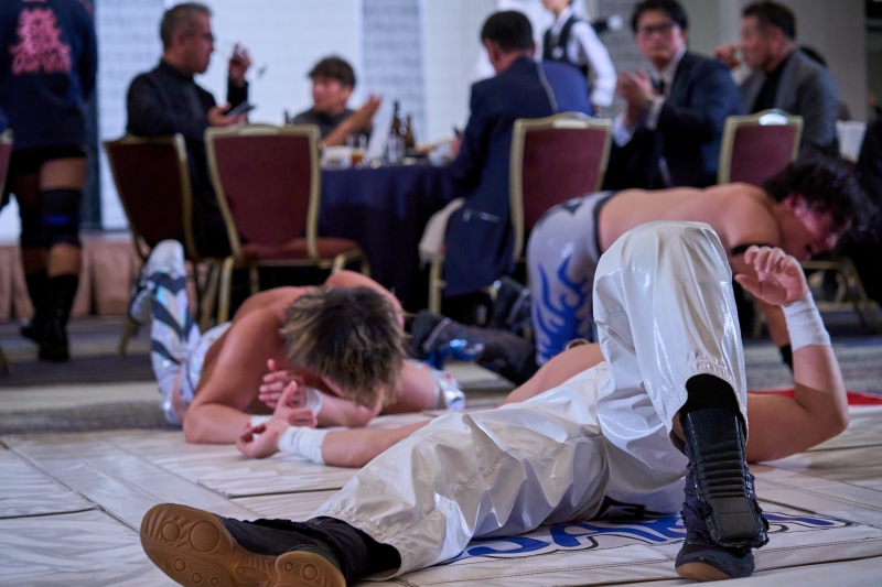 間近でみるプロレスは迫力満点。会場は大いに盛り上がりました。