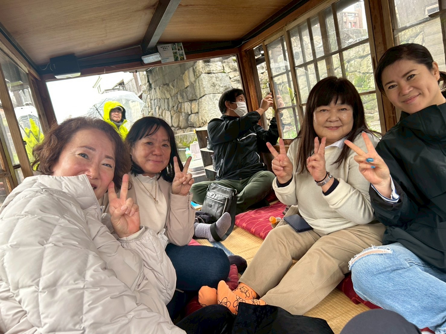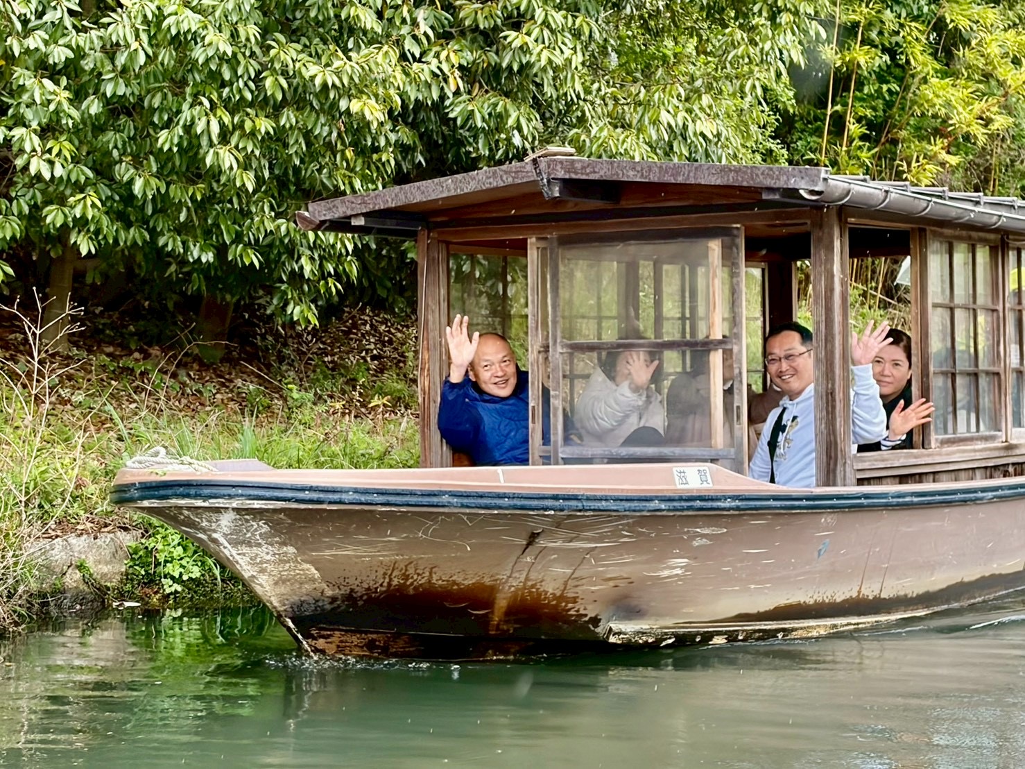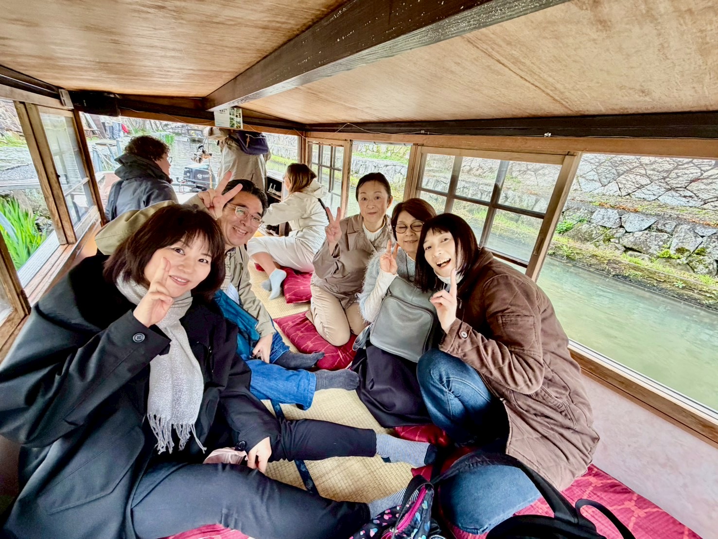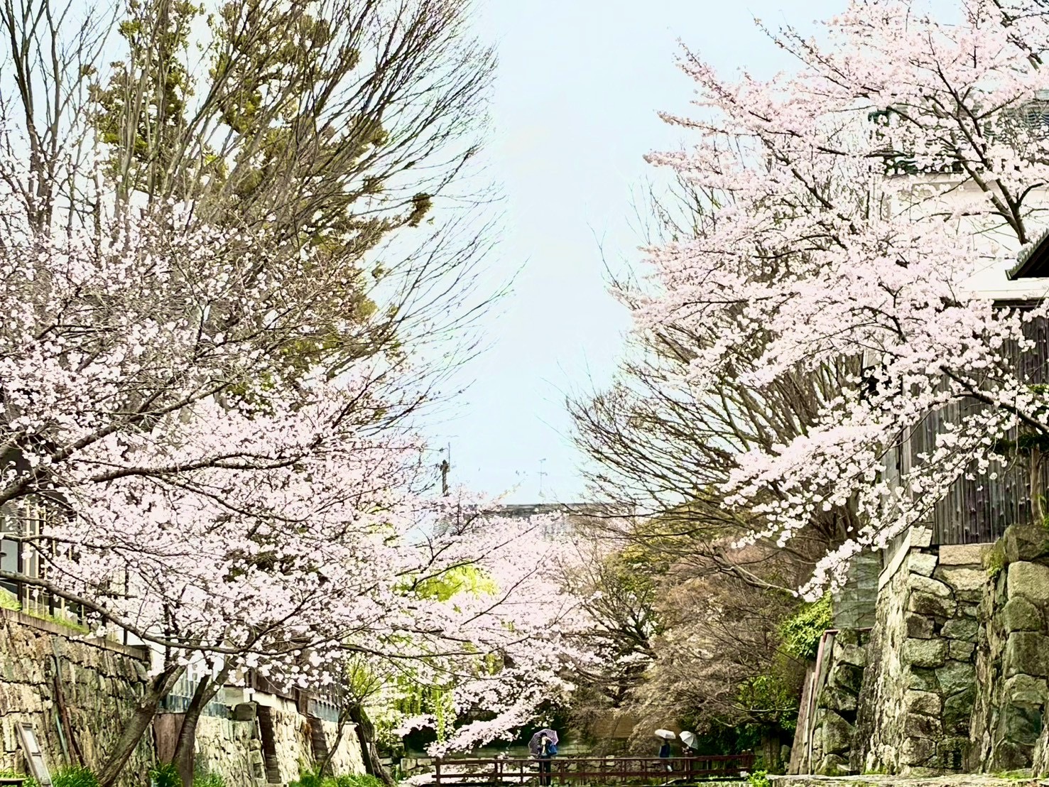 古き歴史ある町並みを後世に伝えています。桜がとても美しいこの時期「八幡堀舟めぐり」を楽しみます。