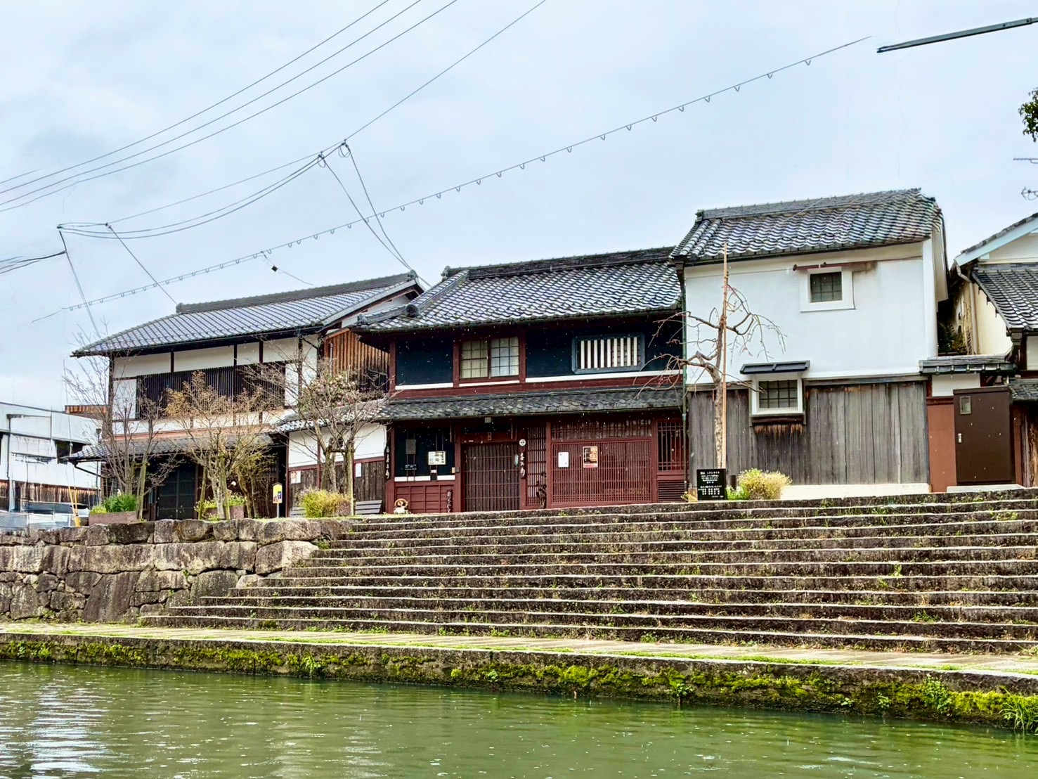 近江商人発祥の地としても知られ、堀の中央部には商人たちが建てた伝統的な木造家屋や白壁の土蔵が並び