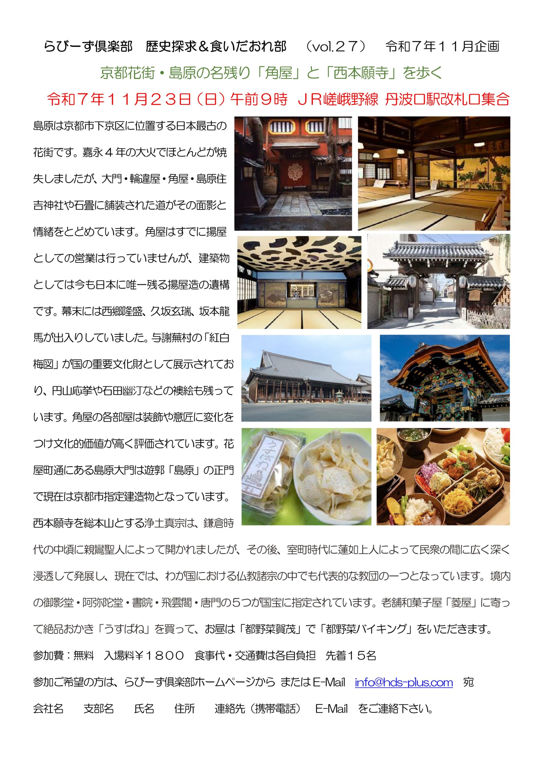 【歴史探求&食いだおれ部】25/11/23京都花街・島原の名残り「角屋」と「西本願寺」歩く