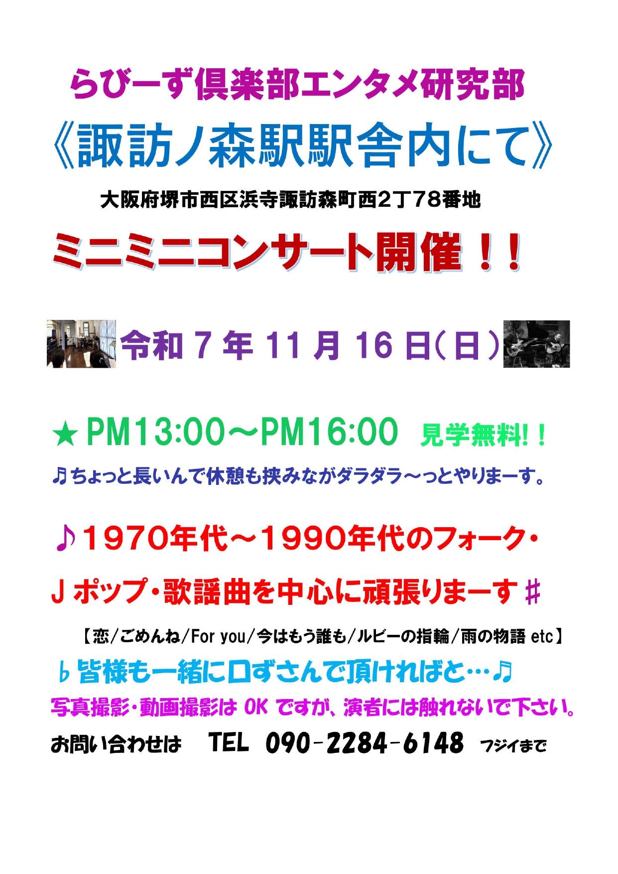 11/16 エンタメ研究部『ミニミニコンサート』の開催