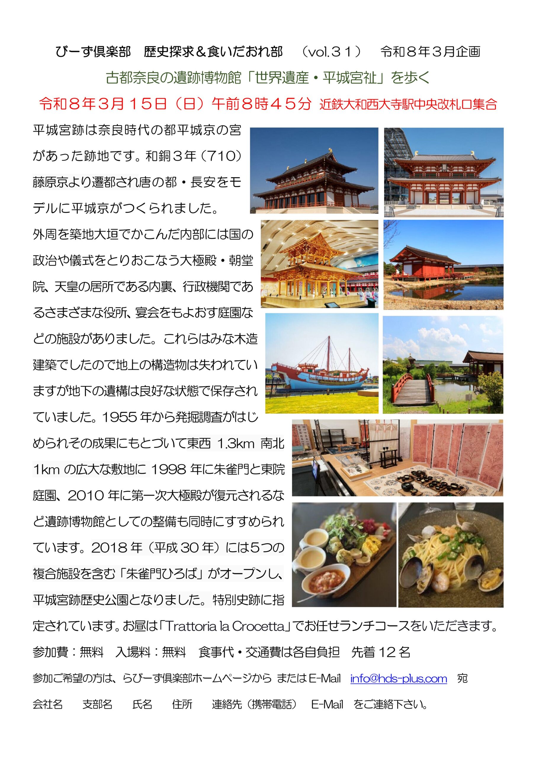 【歴史探求&食いだおれ部】26/03/15古都奈良の遺跡博物館「世界遺産・平城宮祉」を歩く