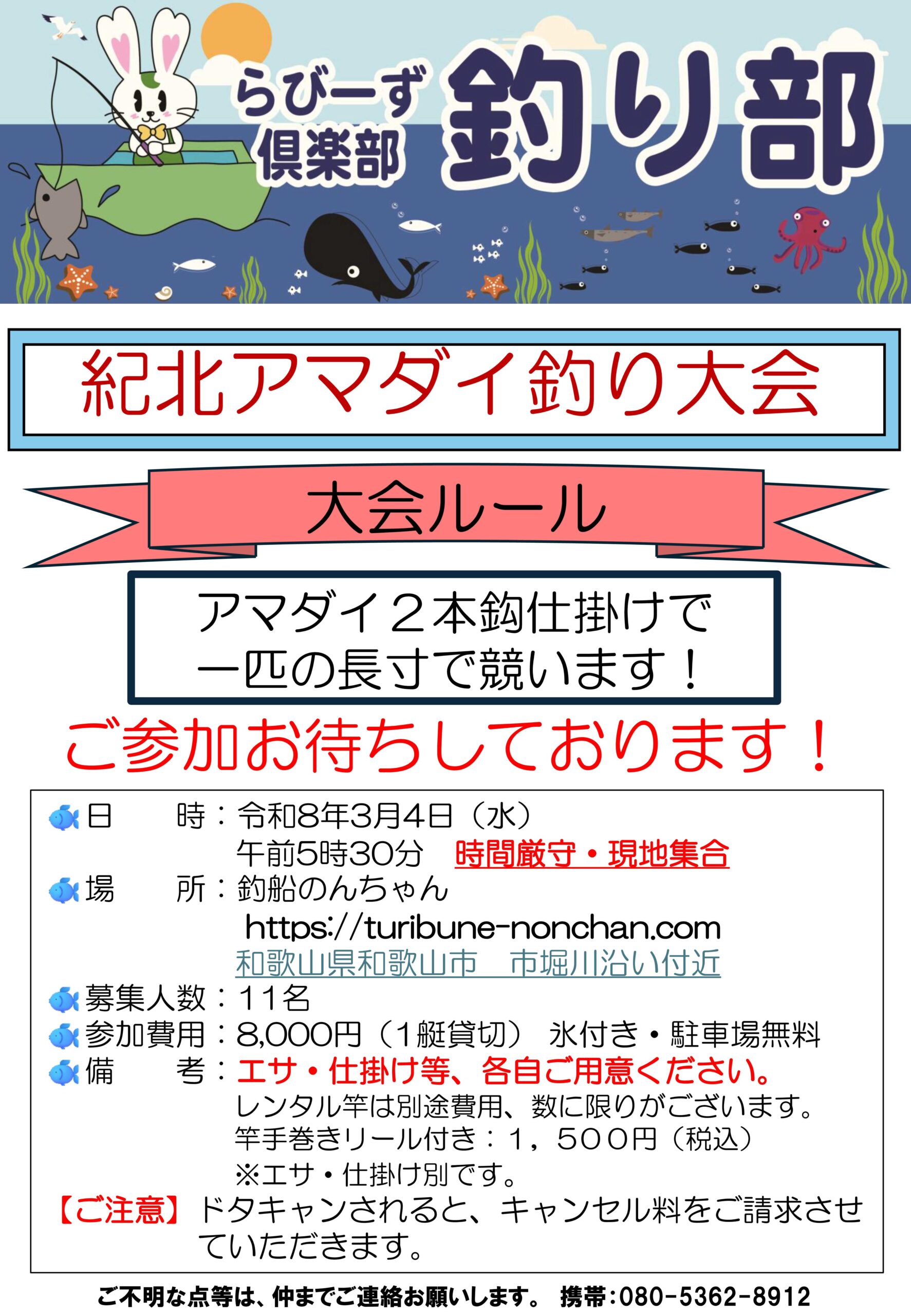 3/4(水)紀北アマダイ釣り大会のご案内 ※申し込みを締め切りました