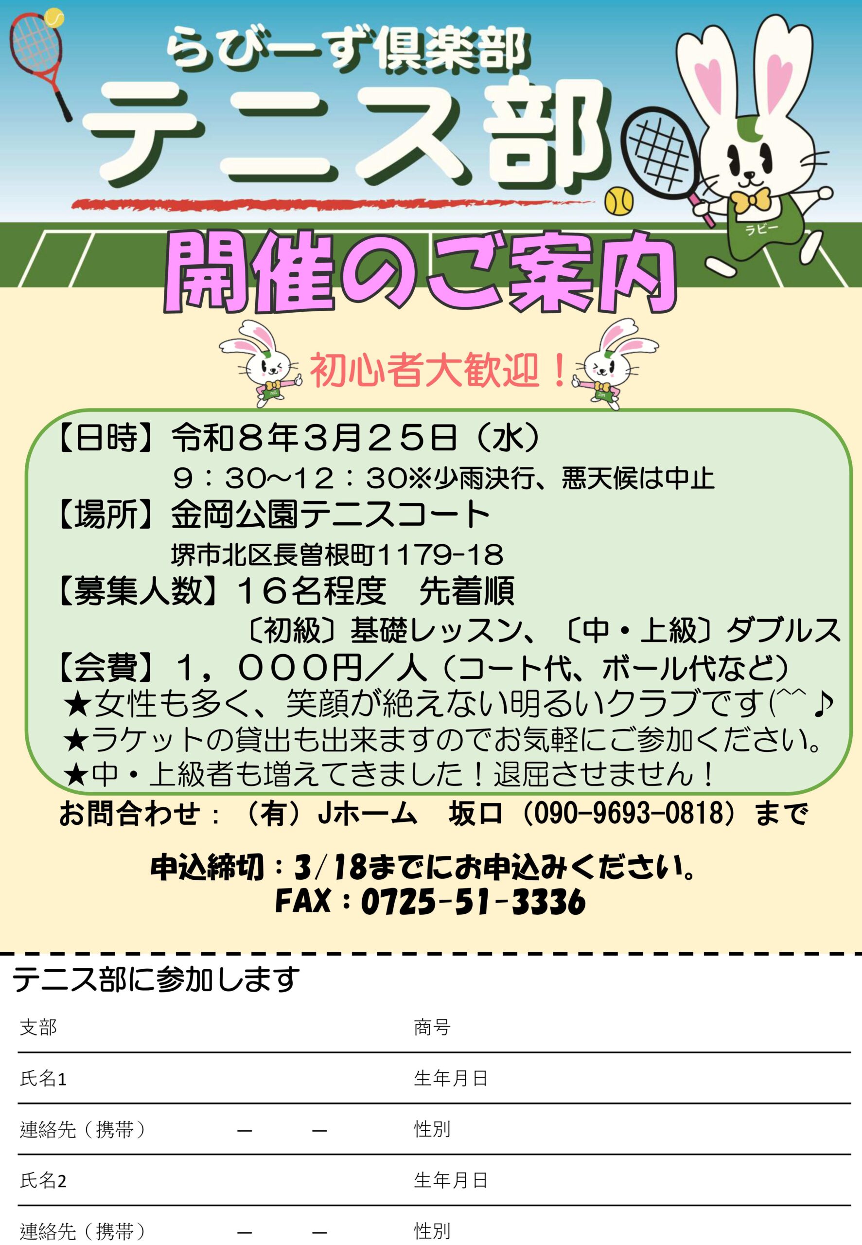 | 参加申し込みURL | https://rabbies-club.com/application/?club-tennis |