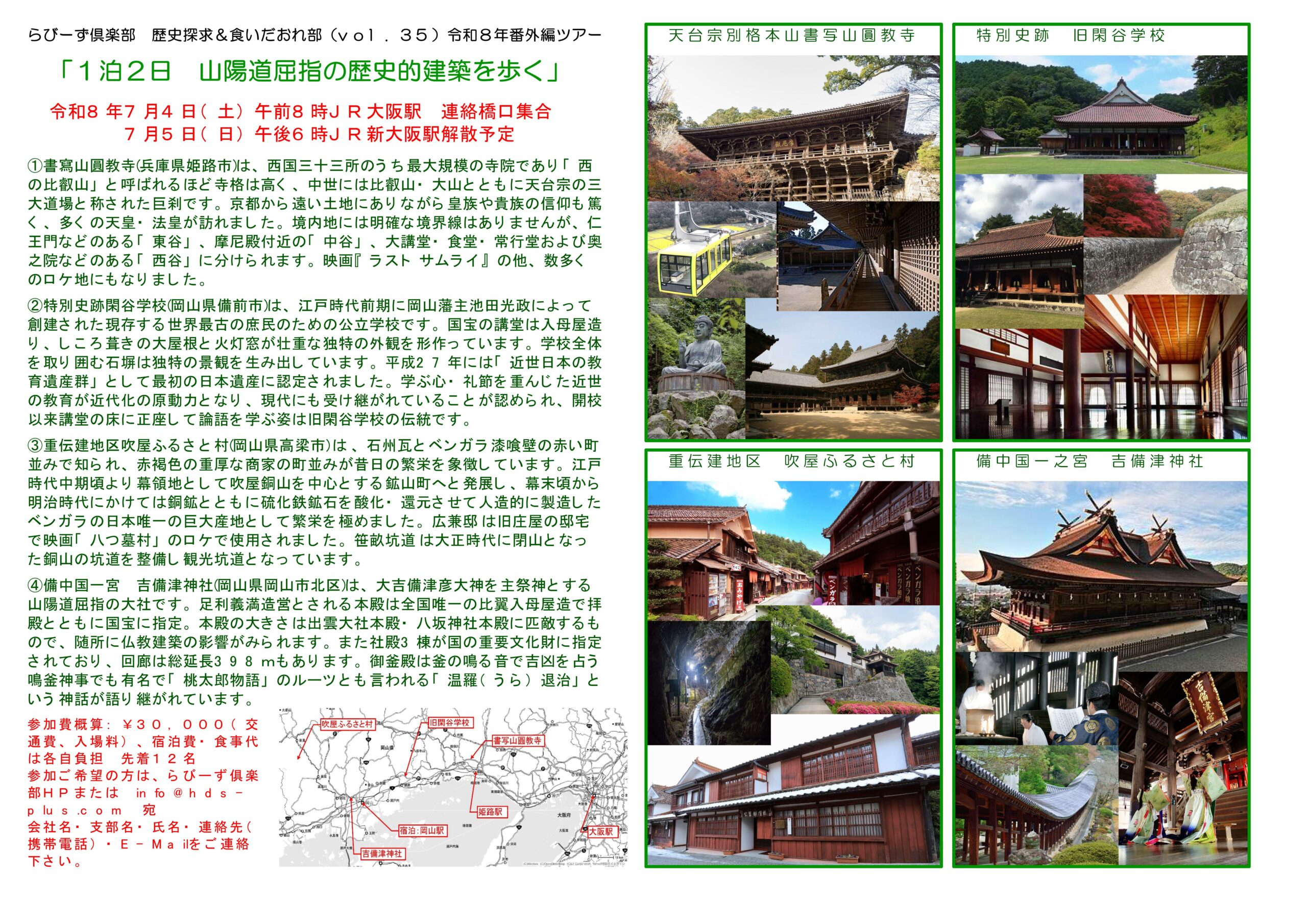 【歴史探求&食いだおれ部】26/07/04~05 1泊2日「山陽道屈指の歴史的建築」を歩く