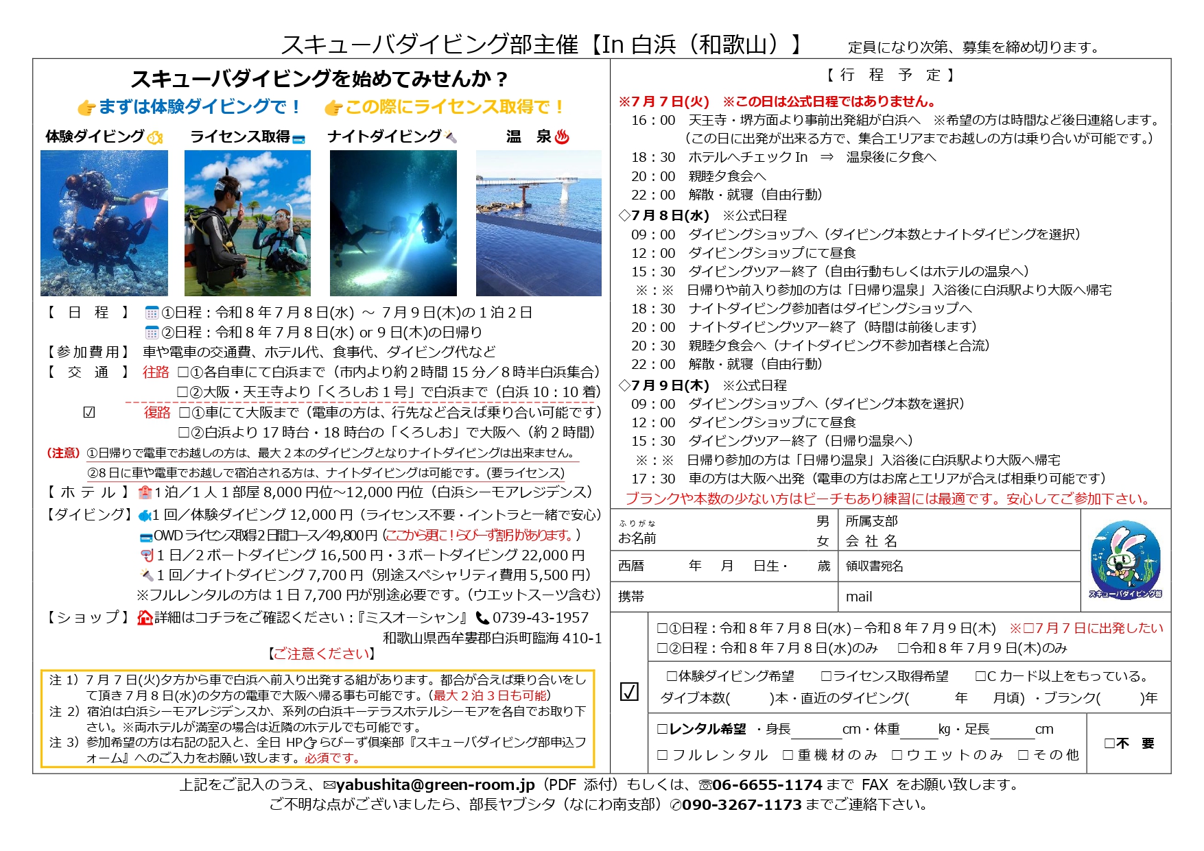 | 参加申し込みURL | https://rabbies-club.com/application/?club-scuba-diving |